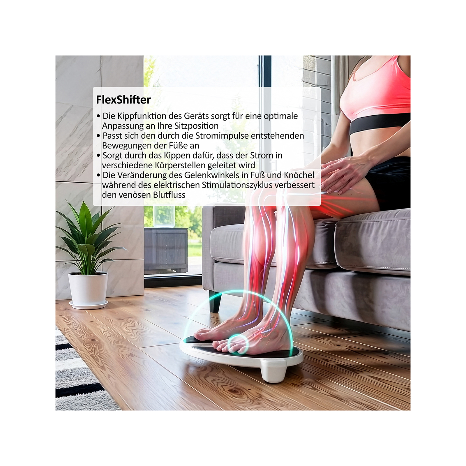 Der Durchblutungsstimulator überzeugt nicht nur durch seine Wirkung, sondern auch durch seine einfache Handhabung. Dank kabellosem Betrieb mit Lithium-Ionen-Akku mit bis zu 60 Tagen Laufzeit, lässt sich das Gerät flexibel einsetzen – ob im Wohnzimmer, im Büro oder sogar unterwegs. Die weichen Soft-Touch Pads aus Silikon sorgen dabei für höchsten Komfort, während das praktische FlexShifter-Schwenkelement eine angenehme Fußposition ermöglicht. Mit seiner Fernbedienung, individuell einstellbaren Programmen und einem automatischen Hauterkennungs-Modus passt sich der Stimulator optimal an die persönlichen Bedürfnisse seiner Nutzer an.
