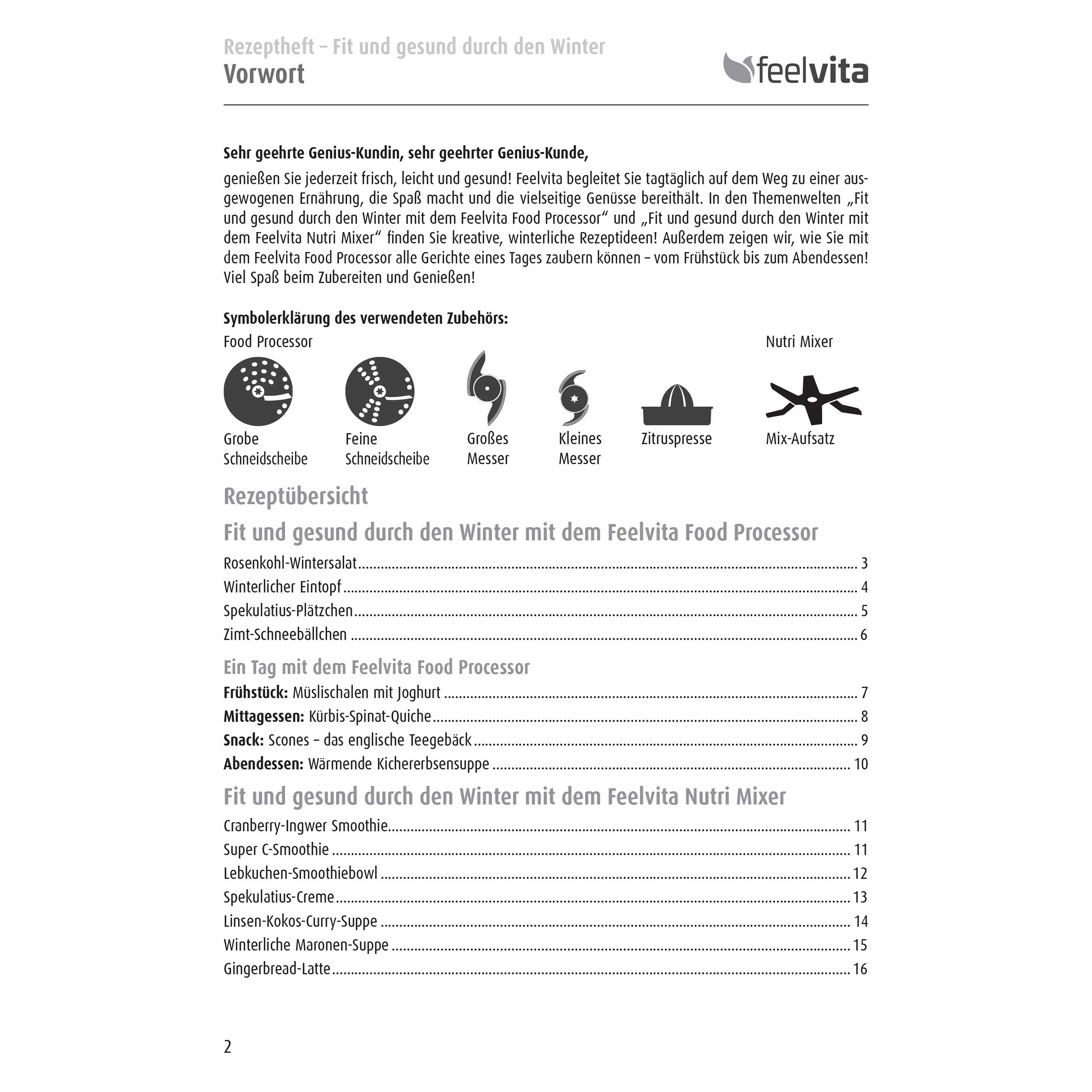 In den Themenwelten „Fit und gesund durch den Winter mit dem Feelvita Food Processor“ und „Fit und gesund durch den Winter mit dem Feelvita Nutri Mixer“ finden Sie kreative, winterliche Rezeptideen! Außerdem zeigen wir, wie Sie mit dem Feelvita Food Processor alle Gerichte eines Tages zaubern können – vom Frühstück bis zum Abendessen!